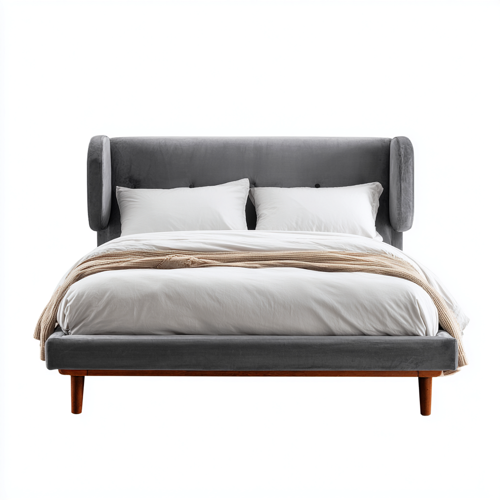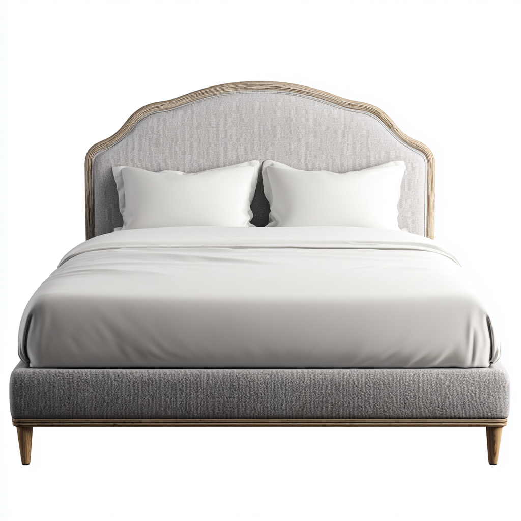 Cama matrimonial tapizada 200x160x120 cm - gris-madera - diseño clásico