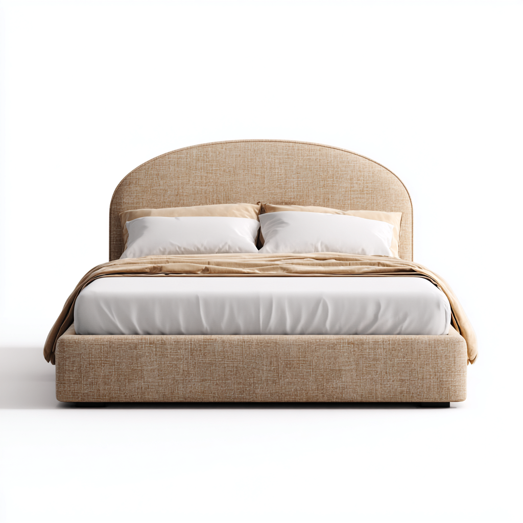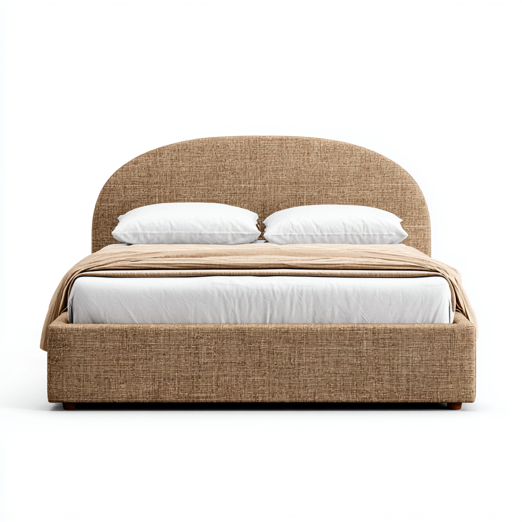 Cama matrimonial - tapizado en tela - 205x155x120 cm - beige - diseño moderno