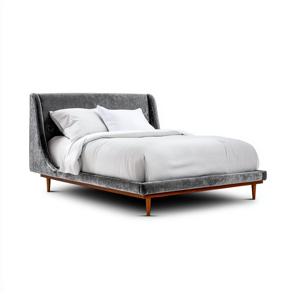Cama matrimonial tapizada 200x160x95 cm - gris - diseño contemporáneo