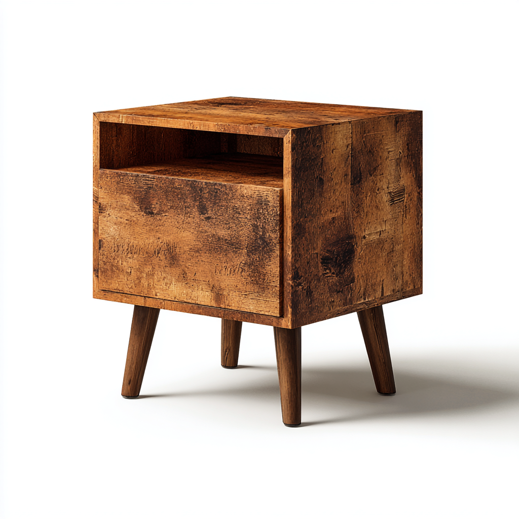 Mesita de noche Madera 45x38x52 cm - Marrón-Negro - Diseño rústico compacto