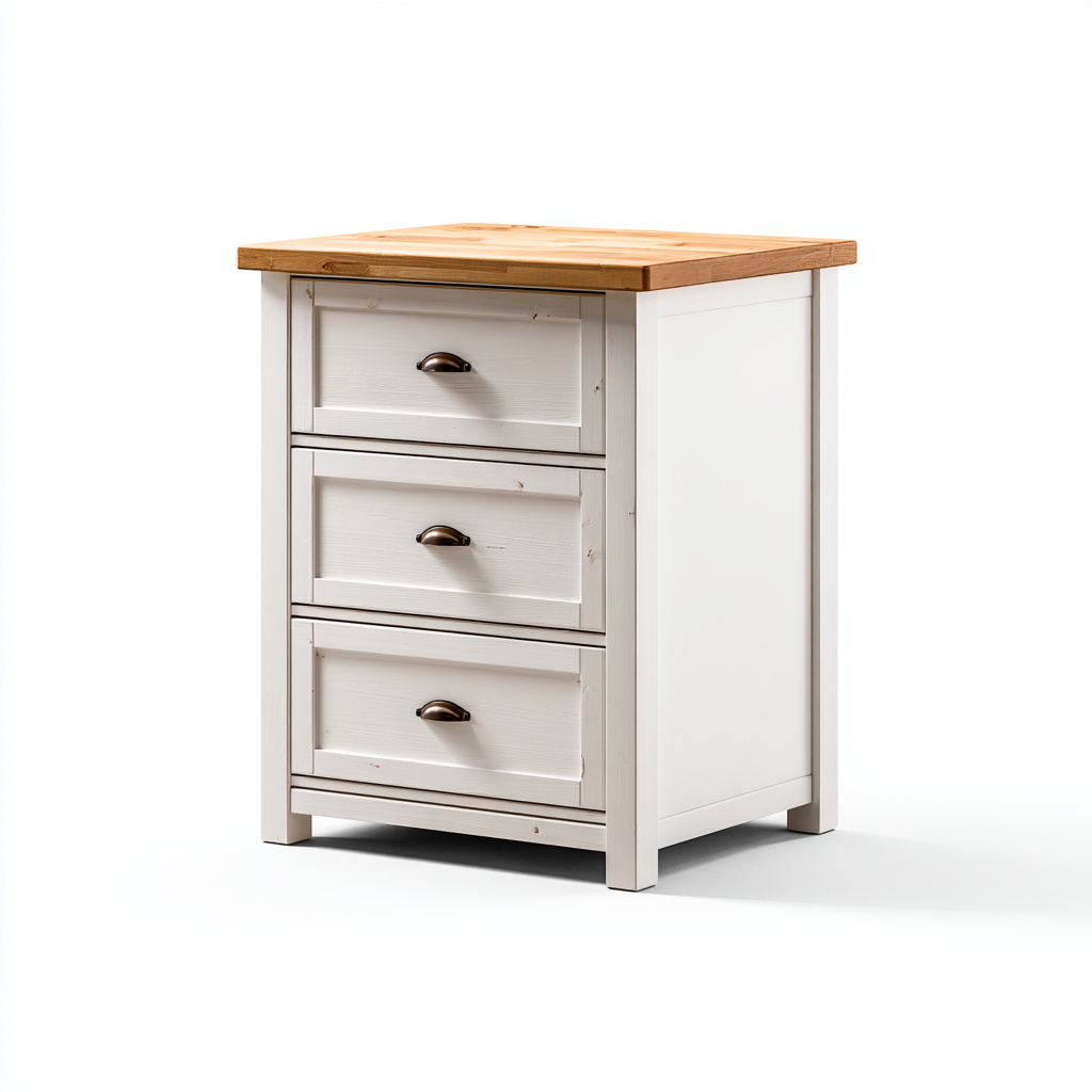 Mesita de noche Madera 62x40x78 cm - Blanco-Madera - Diseño clásico