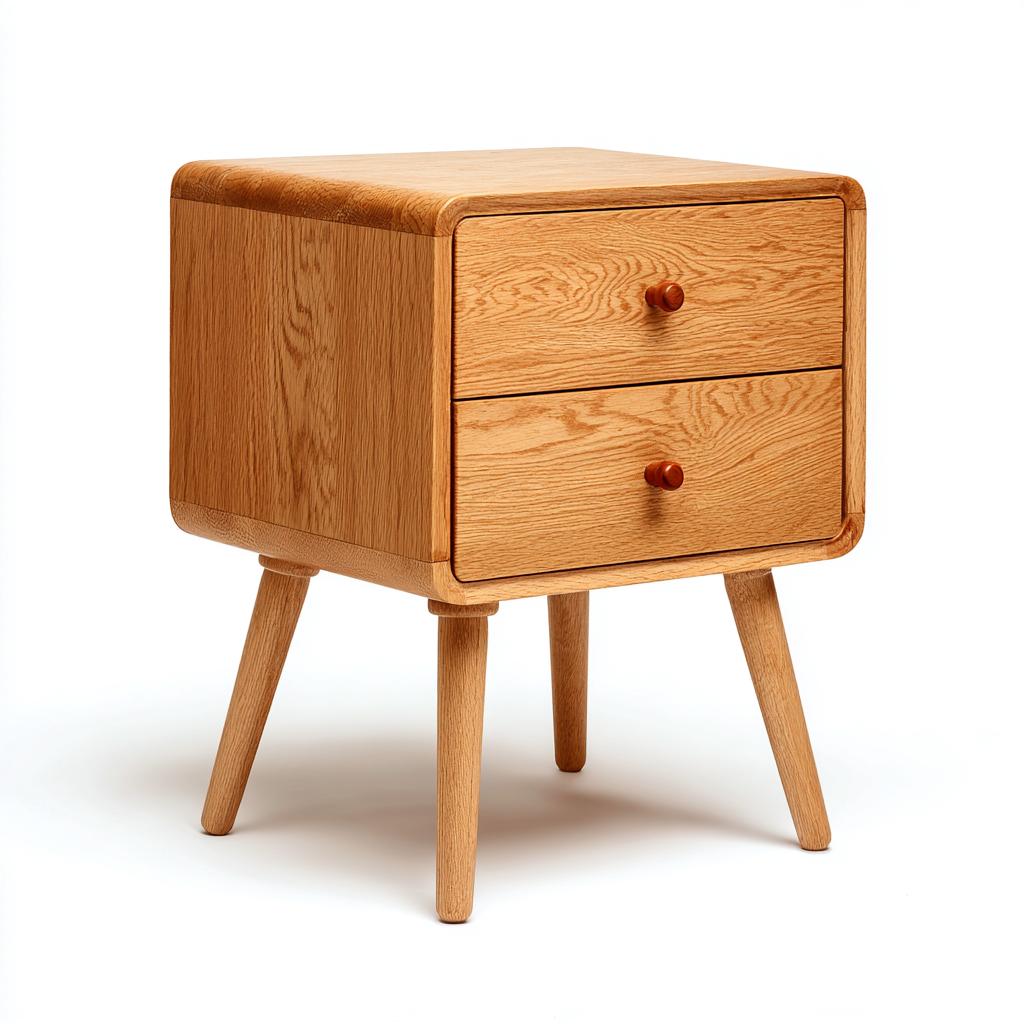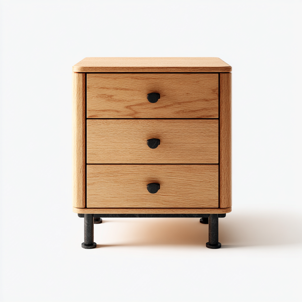 Mesita de noche Madera 46x38x72 cm - Marrón - Estilo nórdico redondeado