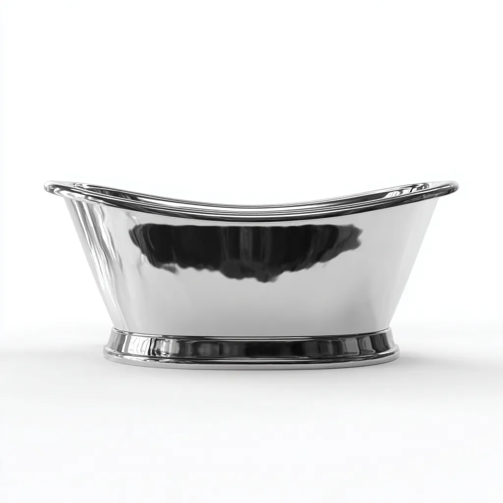 Esta bañera independiente de acero presenta un diseño clásico con bordes suavemente curvados y una silueta elevada que aporta elegancia atemporal al espacio.