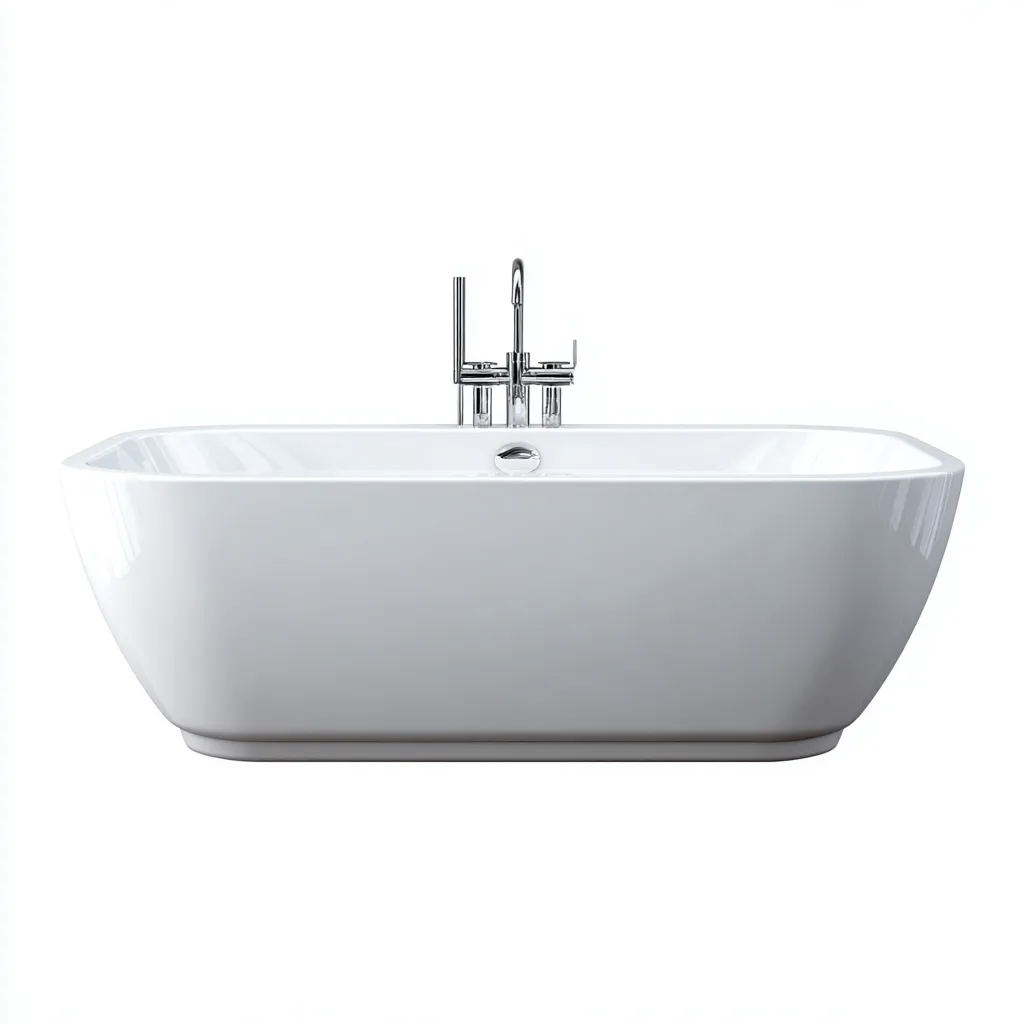 Esta bañera moderna destaca por su forma rectangular redondeada y su apariencia minimalista, ideal para un baño contemporáneo.