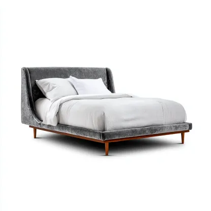 Esta cama matrimonial tapizada destaca por su diseño contemporáneo con líneas suaves y un perfil envolvente. Su estructura baja y estable crea una estética moderna adecuada para dormitorios actuales.