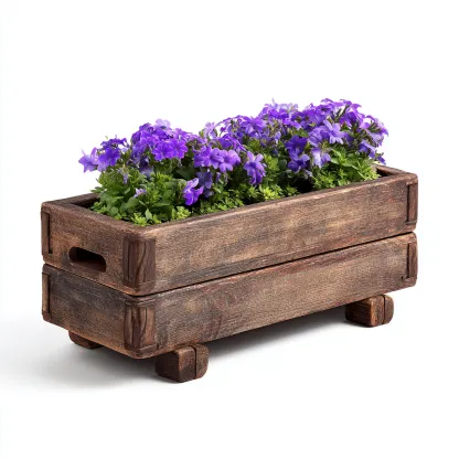 Esta jardinera de madera rectangular combina un diseño rústico con una estructura elevada que ofrece estabilidad y una apariencia decorativa. Ideal para flores, plantas aromáticas o pequeños cultivos.