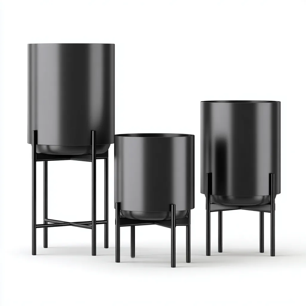 Este set de macetas con soporte ofrece una solución moderna y elegante para exhibir plantas en interiores o jardines. Su estructura metálica elevada realza la presentación de las plantas y aporta un estilo decorativo contemporáneo.