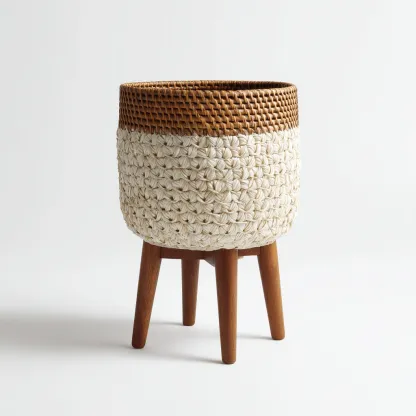 Este producto de maceta con soporte integrado combina una apariencia artesanal con una estructura elevada, ideal para realzar plantas en espacios interiores. Su diseño neutro y natural permite su uso en salones, dormitorios, pasillos o estudios.