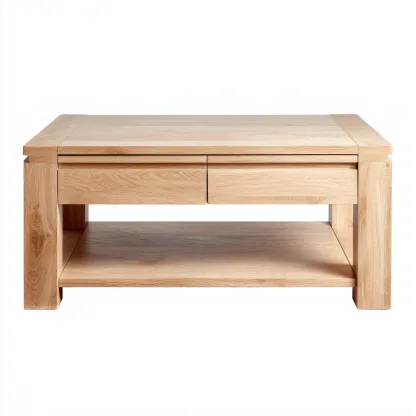Equipada con dos cajones discretos y un estante inferior abierto, proporciona espacio adicional para almacenar libros, accesorios y objetos cotidianos, manteniendo el salón organizado.