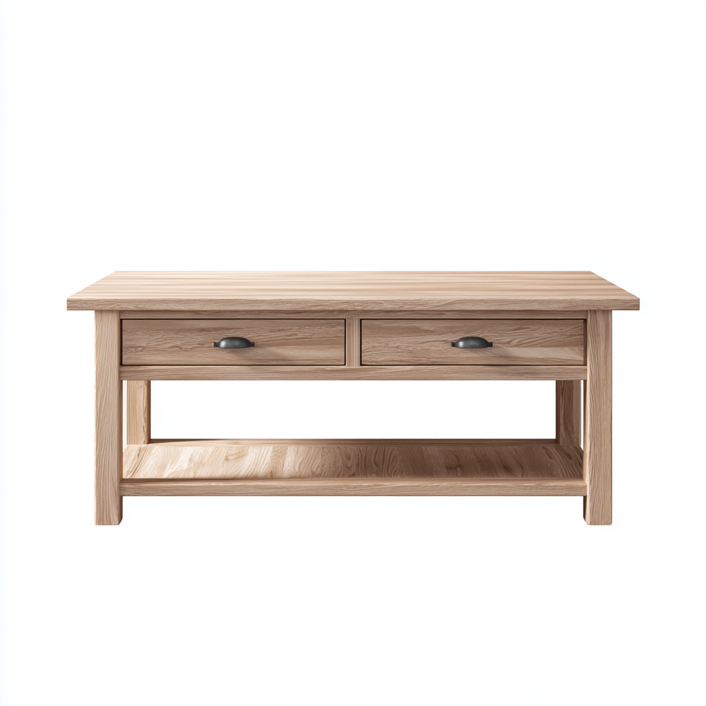 Esta mesa de centro de diseño clásico combina una estructura robusta con detalles tradicionales, ofreciendo una pieza funcional y elegante para el salón.