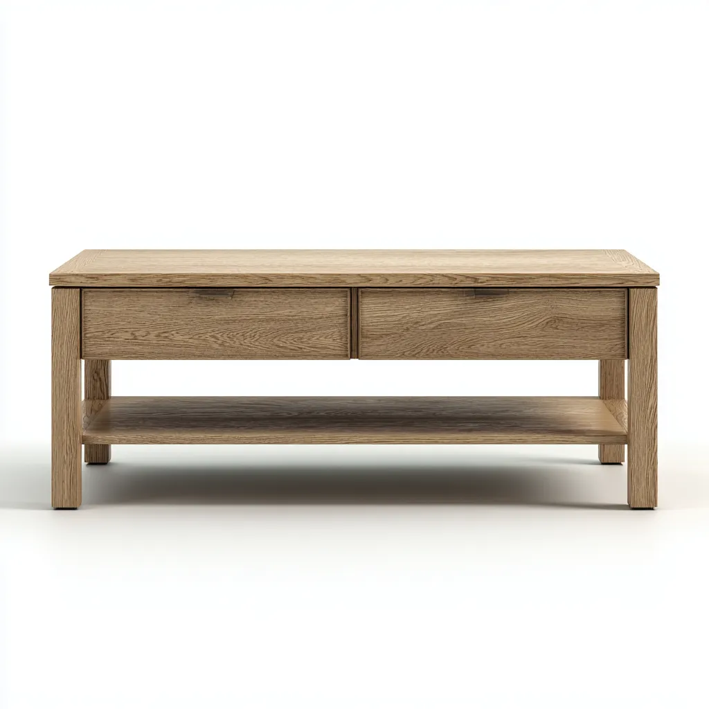 Equipada con dos cajones frontales y un estante inferior abierto, ofrece espacio adicional para almacenar libros, accesorios y objetos cotidianos, manteniendo el salón organizado.