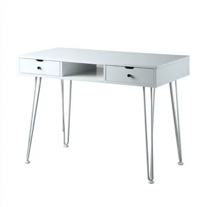 Esta mesa de oficina de estilo moderno ofrece una superficie de trabajo práctica y ligera, ideal para estudios, oficinas domésticas y espacios contemporáneos. Su diseño elevado y líneas finas aportan una estética equilibrada sin sacrificar funcionalidad.