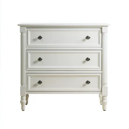 Una mesita de noche de estilo elegante que aporta una estética serena y limpia al dormitorio gracias a su acabado blanco básico y formas clásicas.