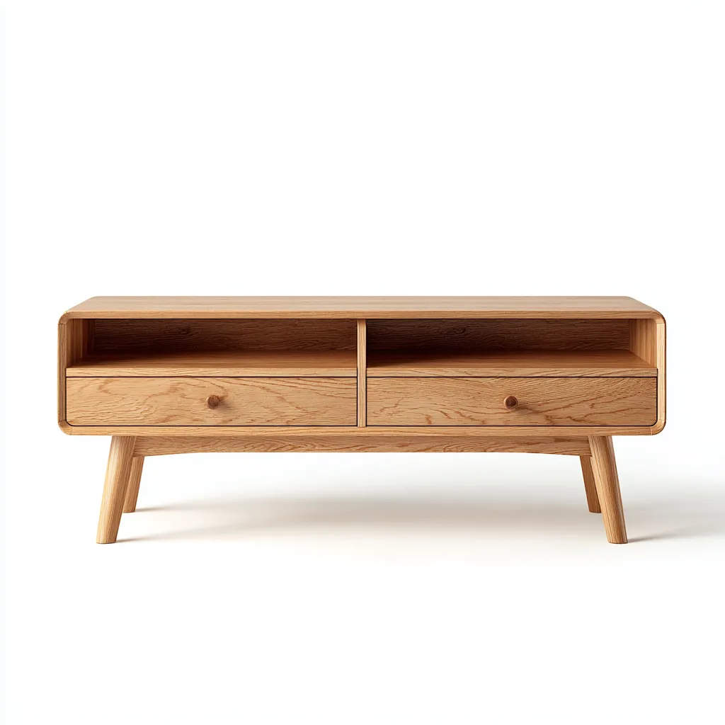 Este mueble de TV de estilo nordico combina funcionalidad y estetica con una estructura ligera y un acabado en madera natural. Su diseno compacto facilita la organizacion de dispositivos y articulos en el salon.